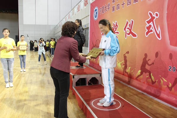 在本届运动会中,六合彩网上投注app获得宁夏大学第十届全民健身体育文化节女子足球比赛第二名、学生广播操比赛第三名、团体总分第五名,第四十四届体育运动会第四名的好成绩,并荣获第十届全名健身体育文化节“精神文明奖”。校领导为六合彩网上投注app颁发了奖牌和奖金。