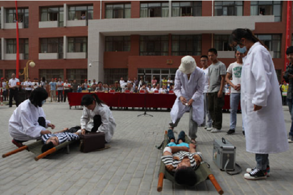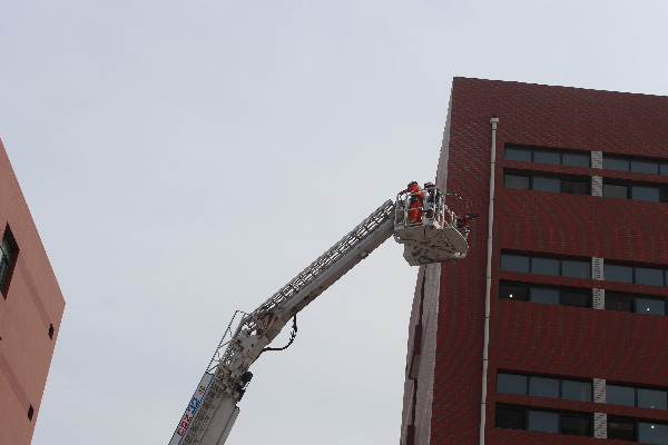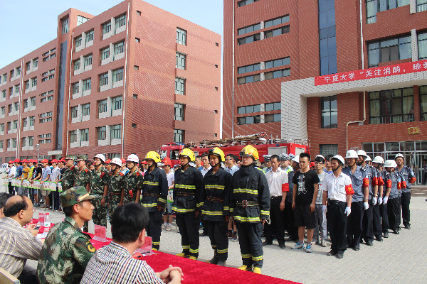 首先,由学院党委书记马正亮致辞,接着,学院院长田军仓与西夏区消防大队领导互赠牌匾,最后齐岳书记宣布此次消防演练活动正式开始。此次演练包括报警、人员疏散、医疗救伤、事后处理等环节。演练结束后,赵利宁副书记就此次消防演练的意义做了精彩发言,齐岳书记及其他校领导探望参与演练的消防官员。