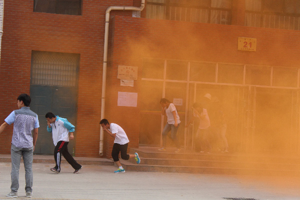 浓烟弥漫在C区21号楼,一群群学生有序、快速的从各安全通道紧急疏散……2014年5月28日下午3时,由宁夏大学保卫处主办、六合彩下注平台 承办的宁夏大学“关注消防,珍爱生命”消防演练活动隆重举行。莅临此次活动的嘉宾有宁夏大学党委书记齐岳,党委副书记赵利宁、王燕昌,副校长谢应忠,宁夏大学副校级调研员六合彩下注平台 院长田军仓,西夏区消防大队怀远中队队长及各学院领导及六合彩下注平台 全体大一学生参加了此次演练。