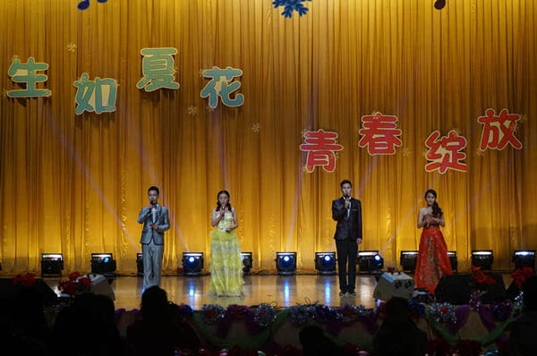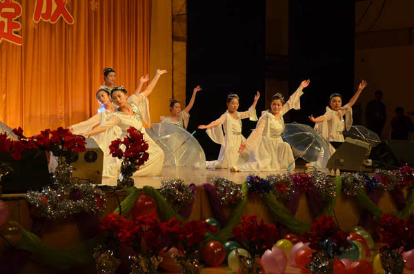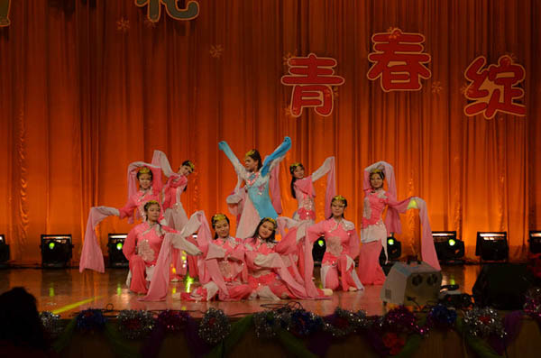 晚会以热情奔放的啦啦操《舞动青春》作为开场,彰显了晚会青春奔放的主旋律。由学生自导自演的小品《大腕云集》,舞蹈串烧《Step up》,舞蹈《白月光》、《小苹果》、《落花情》、《Dance with you》,《imagine》、乐队《歌曲串烧》等节目精彩纷呈、特色鲜明,通过歌曲、小品、乐器演奏、舞蹈等不同形式的表演为大家带来了一场美轮美奂的视听盛宴,无一不展示了学院学生的青春活力和如火激情。尤其是来自学校老教师艺术团表演的二胡齐奏《战马奔腾》、小合唱《大中国》、豫剧《咱俩说说心里话》、葫芦丝笛子重复奏《傣家欢歌》、板胡独奏《秦腔牌孑曲》及宁夏座唱《白字经》等节目,让新生既领略到了中国传统文化的博大精深,也让同学们感受到了老教师们深厚的艺术功底以及对青年大学生健康成长的殷切期望。整台晚会体现了传统与现代完美结合,使“新老携手共谱华章”得到完美诠释。