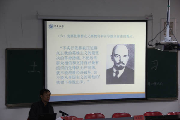 李斌教授从群众观点是马克思主义的基本观点、高校开展群众路线教育实践活动必须注意的几个问题和高校开展群众路线教育实践活动的路径选择三个方面展开论述。李教授的报告既有扎实的理论阐述,又有生动的事例举证,具有很强的针对性。