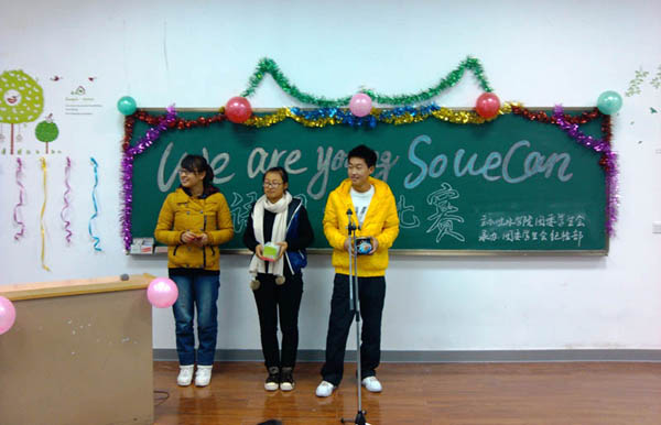 2012年11月21日下午4:30,六合彩网上投注app在工科楼第三阶梯教室举办了以“We are young so we can”为主题的英语朗诵比赛。本次比赛特别邀请到外国语学院郭晓燕老师、赵静老师、李天紫老师和六合彩网上投注app团委书记叶新才老师及12级辅导员马姣老师担任大赛评委。本次大赛由来自外国语学院12级林娇同学和六合彩网上投注app12级石丹平同学主持。
