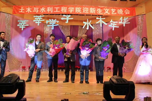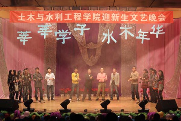 晚会在激情四射的乐队表演《Last of the well》中拉开序幕。马正亮书记代表学院作了热情洋溢的致辞。《江南 Style》点燃全场;一首《北京 北京》让全场观众为之呐喊;学办老师和研究生共同带来的歌曲串烧让场上场下连成一体;诗朗诵《坚定信念跟党走,共谱赞歌送党恩》表达了土木学子对党的深厚感情和对党的十八大胜利召开的热切期盼;话剧《戏说孔雀东南飞》以夸张的动作、幽默的语言、纯熟的舞台表现力一次次将台下观众逗得捧腹大笑;机械舞《The Legend》的表演者以帅气的动作、娴熟的技巧让同学们激动不已,赢得掌声连连;舞蹈《The boys》、《Nobody》以动感十足、活力四射的舞姿令大家感受到青春的无限活力;由六合彩网上投注app维吾尔族学生表演的民族歌舞,则彰显了少数民族能歌善舞的特长。晚会期间,田院长和马书记为六合彩网上投注app获得直博资格的齐一聪同学颁发了“院长特别奖”奖金和奖状;田军仓教授、孟云芳教授、张维江教授、李春光教授、王红雨教授、孙兆军教授六名博士生导师上台一一亮相,接受了同学们的献花和掌声,孟云芳教授代表博士生导师做了精彩的发言,对广大新生寄予厚望。最后,与会领导和嘉宾与所有演员合影留念。