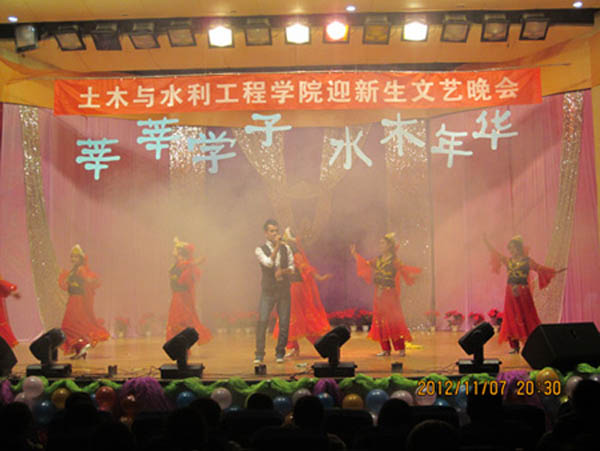 2012年11月7日晚,学院2012级新生迎新晚会在A区音乐厅隆重举行。宁夏大学纪检委书记孔斌教授,副校级调研员兼学院院长田军仓教授,学院党总支书记马正亮老师,副院长姚青云老师、崔自治老师、尹娟老师、马彩霞老师,党总支副书记张强老师,博士生导师、三办主任、新生班班主任与2012级新生一起观看了晚会。