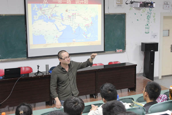 此次讲座以“一带一路”为引子,马越老师由浅及深地向同学们分析了当前的国际形势、“一带一路”倡议国家战略决策制定的背景、国家最新经济政策实施的原因以及习近平总书记系列重要讲话精神。马越老师将“国家问题”人格化,用诙谐幽默的语言向同学们讲解了复杂的国家问题。