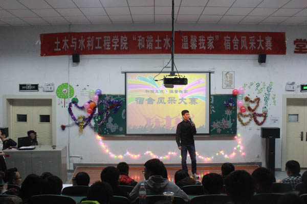 本次大赛的评选由风采展示和才艺展示两个环节构成,首先是由参赛的六个宿舍的代表队他们的宿舍进行ppt讲解,有以简约自然为主题的也有以灰色城堡为主题的,还有以二次元世界为主题的,风格迥异,十分的吸引眼球。风光的背后,有汗水,有辛勤的劳动,更加彰显了宿舍温暖的意义,那便是能相聚在一起“we are伐木累”的缘分。才艺展示环节各宿舍使出浑身解数,有吉他弹唱、有舞蹈、有小品、有相声……现场气氛十分热烈,经过严格评分,21号楼314宿舍荣获一等奖。