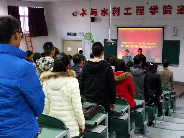 2015年12月1日12点30分,六合彩网上投注app在工科楼三阶教室举行了第二期发展对象培训班结课仪式。学办主任郭利老师出席了本次仪式,15级代理辅导员韩东担任主持。