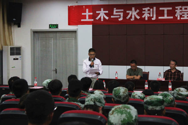 2016级新生开学典礼在怀远校区研究生楼二楼报告厅举行。典礼由学办主任郭利老师主持。学院党委书记马正亮老师、院长毛明杰老师、党委副书记王德全老师、副院长刘海峰老师、工会主席杨明成老师、土木工程系主任金宝宏老师、水利工程系主任李王成老师、建筑城规系主任燕宁娜老师、交通工管系主任张学科老师、学办主任陈艳老师、教科办主任白俊英老师、实验室主任刘登川老师、研究生办公室秘书马轶老师、学院团委书记王娜老师、2016级辅导员陶雪梅老师、优秀教师代表张文博老师、2015级辅导员马小凤老师出席。全体2016级本科生、研究生参加此次开学典礼。