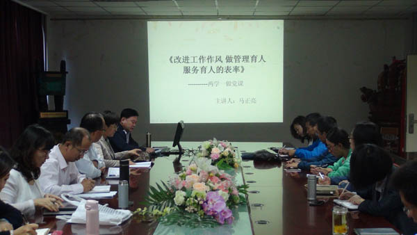 在工科楼四楼多媒体会议室开展了“两学一做”学习教育。参会人员包括学院教工第三党支部全体党员、教工一、二党支部委员以及各学生党支部委员。会中,学院党委书记马正亮结合“两学一做”第二专题学习内容为全体参会人员做了题为《改进工作作风,做管理育人服务育人的表率》的专题讲座。马正亮书记以宁夏大学“十三五”总体发展为背景,结合六合彩网上投注app现阶段工作中的目标和存在问题,从“转作风,扬正气”和“强意识,促发展”两大主题出发,对“两学一做”的科学内涵及如何使学院教职工党员在实际工作中践行“两学一做”作了深入浅出地讲解。并通过典型事例、全新视角,对学院教职工党员在党风建设、岗位职责、学科建设、师德建设、假期文化建设等方面提出了要求和建议。专题讲座内容丰富、论述精辟,既有理论深度、又有很强的针对性、现实性,给教职工党员同志们很多启迪和思考,对于学院深化“两学一做”学习教育具有很强的指导意义。