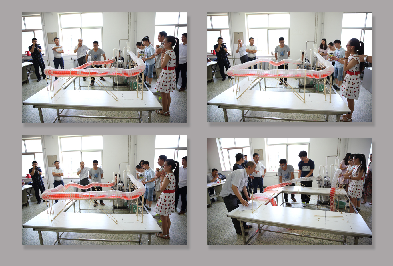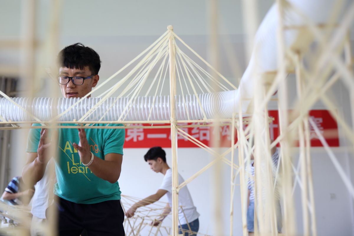 本次结构设计竞赛采用2017年全国赛题,以渡槽支承系统结构设计为背景,通过制作结构模型并进行输水加载试验,促使参赛学生共同探讨输水时渡槽支承系统结构的受力特点、设计优化、施工技术等问题。比赛要求选手�25分钟内现场安装制作模型并进行输水试验,从设计理念、承载能力、输水效率等方面进行综合评分�