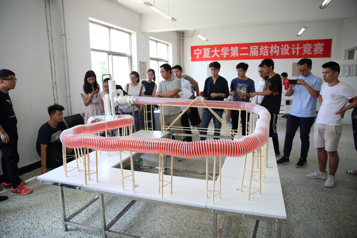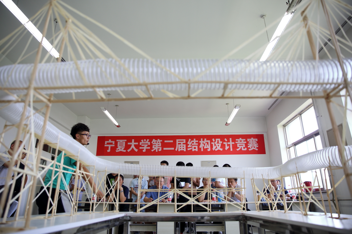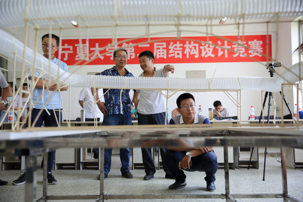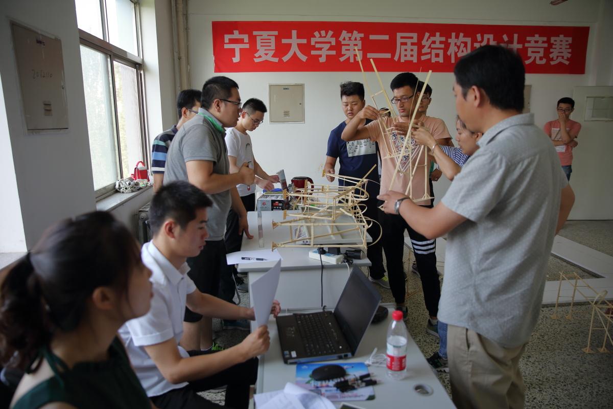 2017�7�13日,宁夏大学第二届结构设计竞赛暨全区第二届大学生结构设计竞赛选拔赛在文萃校区实验A楼举办。土木与水利工程学院党委书记高继明、院长毛明杰、副院长刘海峰出席了本次比赛,大赛评委由崔自治、郭少春等专业教师担任,共十二支队伍36人参加了本次比赛�