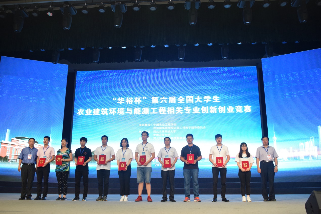 教育部高等学校农业工程类专业教学指导委员会和中国农业工程学会于2018年8月25~27日在西北农林科技大学顺利举办第六届华裕杯全国大学生(研究生)农业建筑(生物)环境与能源工程相关学科专业创新创业竞赛,我校在本次大赛中喜获佳绩,且被授予全国优秀组织单位奖。