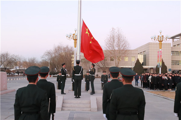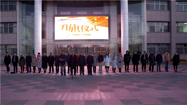 升国旗仪式在宁夏大学贺兰山校区德勤楼广场举行,学院党委书记高继明、院长毛明杰、副院长李应海及全院师生代表参加了此次升国旗仪式,升国旗仪式由党委副书记苏宇静主持。