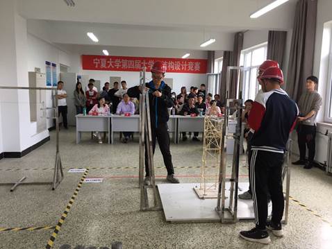 承办的“宁夏大学第四届大学生结构设计竞赛”在文萃校区躬行楼拉开序幕。学院党委书记高继明、院长毛明杰、副院长刘海峰及80多名师生参加了本次竞赛活动。
