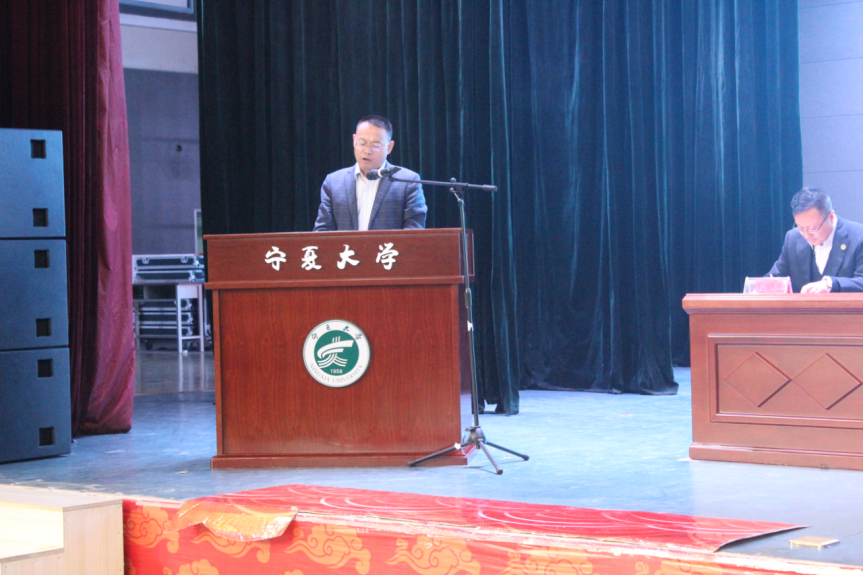 院长毛明杰主持。宁夏教育厅副厅长王春秀、宁夏自然资源厅副厅长包敏、宁夏大学副校长李建设以及主办单位、各学校、承办单位、协办单位及冠名单位领导在主席台上就坐。出席开幕式的还有裁判专家、竞赛组委会成员、各参赛队领队教师、竞赛选手、志愿者工作人员以及竞赛观众350余人。