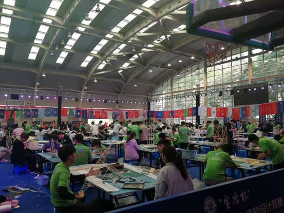 本次竞赛聚焦国家西部开发和“一带一路”倡议、积极服务区域发展需求,具有鲜明的时代特点与国情特色,以《山地输电塔模型设计与制作》这一命题为出发点,比赛要求参赛队员经过累�16小时的现场模型制作,在经专家打分、叙述答辩等环节后,针对静载、随机选位荷载及移动荷载等多种荷载工况下的空间结构进行受力分析、模型制作及试验,并现场抽签决定加载工况,具有不确定性,极具挑战性,更具工程针对性与综合考察性�