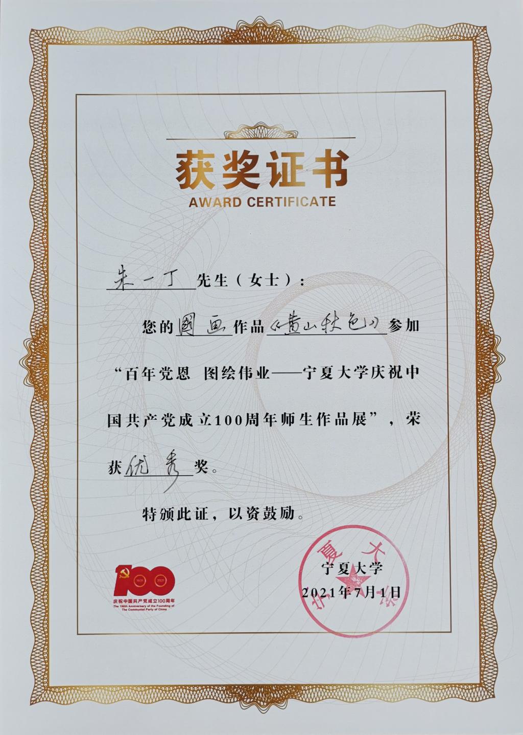 “百年党� 图绘伟业—宁夏大学庆祝中国共产党成立100周年师生作品展”二等奖
