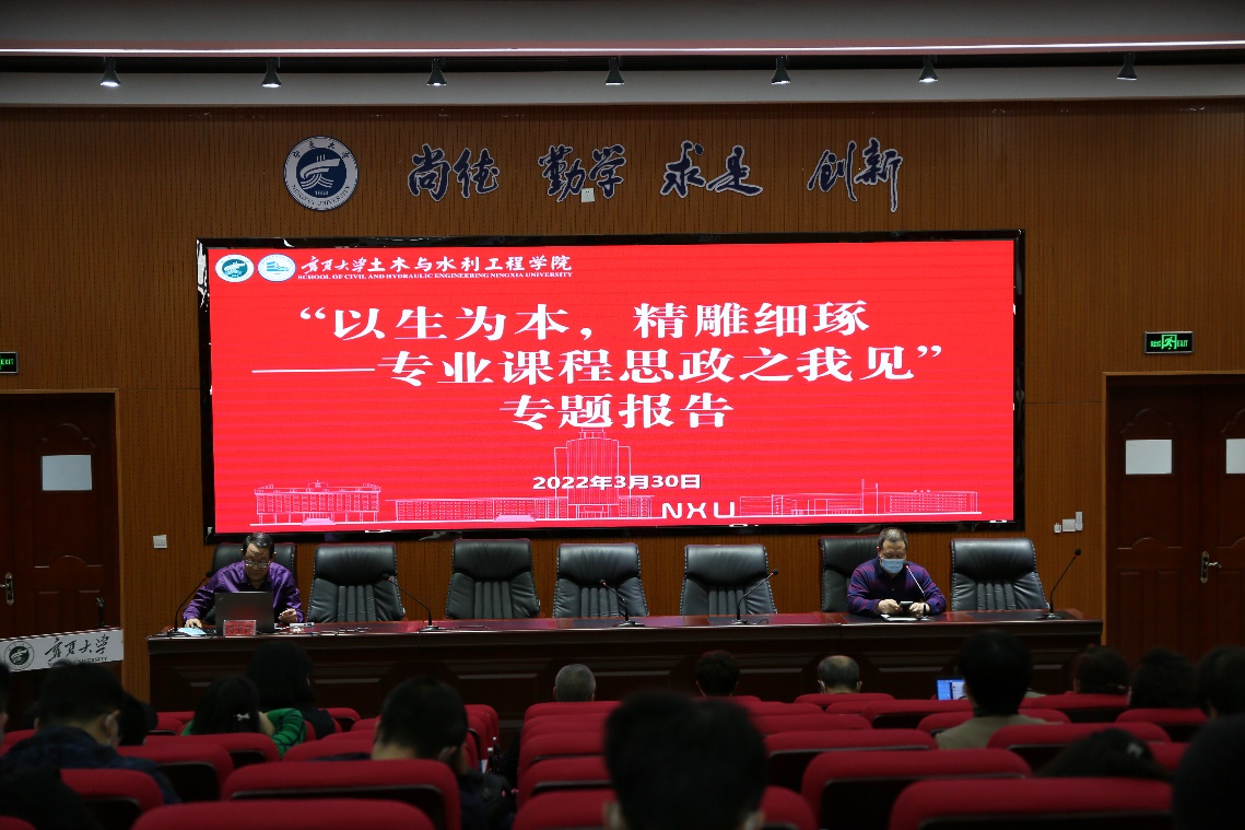 为全面落实立德树人根本任务,把思想政治教育贯穿人才培养体系,全面推进六合彩网上投注app课程思政建设,切实提升六合彩网上投注app教师课程思政建设的意识和教学能力, 3 月30 日下午,学院邀请宁夏大学物理与电子电气工程学院汤全武教授为六合彩网上投注app全体教职工作了题为《以生为本,精雕细琢专业课程思政之我见》专题讲座,讲座由李王成副院长主持,学院书记及班子成员、全院教职工聆听了讲座。
