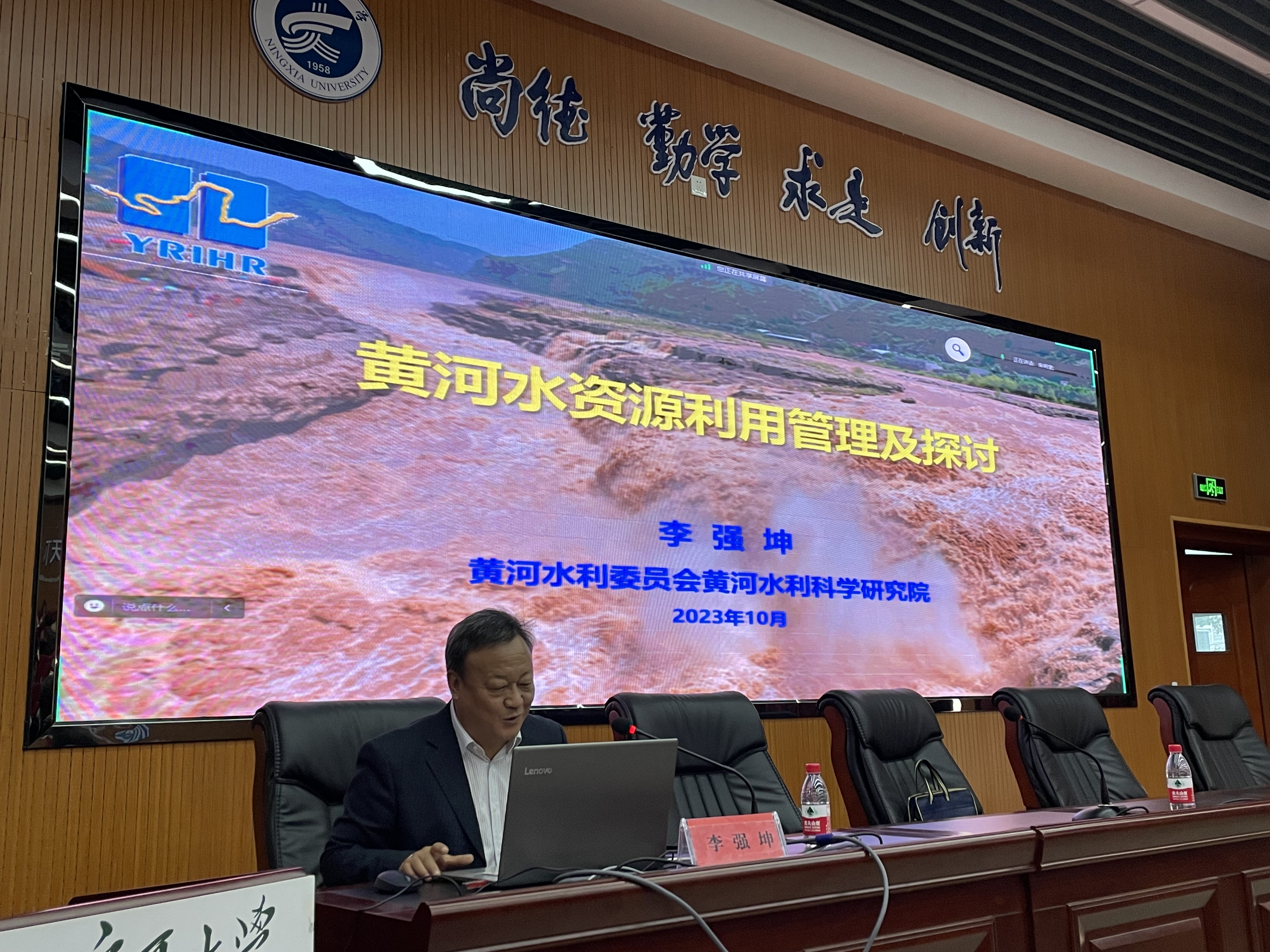 第十五届研究生学术论坛成功举办,黄河水利委员会黄河水利科学研究院李强坤教授级高工应邀为学院师生做题为“黄河水资源利用管理及探讨”的学术报告。报告会由学院党总支书记尹娟主持,线上线下同步进行,学院师生160余人在现场聆听了讲座,另有200余人线上参会。