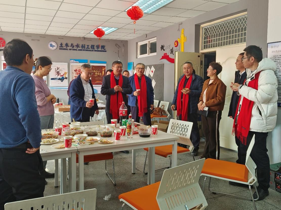 宁夏大学副校长王忠静、宁夏大学总工会主席孙建军、工程与地理学部党委书记陈晓敏、学部党委副书记刘翔未也参与到活动中,与老师们一同包饺子、吃饺子,并送来了学校和学部对老师们的关心和祝福!