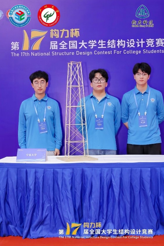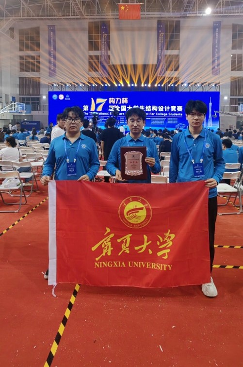 11�7�-11�10日,在教育部、住房和城乡建设部和中国土木工程学会主办,广州大学承办的“构力杯”第十七届全国大学生结构设计总决赛中,土木与水利工程学院杨淑雁老师和吴平老师指导的曾天赐、岑佳津和苏振旺同学组成的“筑梦未来”队获得二等奖的好成绩,宁夏大学荣获优秀组织奖�