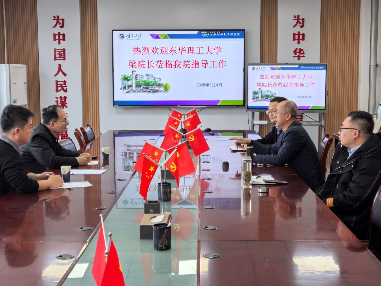 2025�3�4日,东华理工大学土木与建筑工程学院院长梁炯丰一行来宁夏大学土木与水利工程学院参观交流。宁夏大学土木与水利工程学院副院长刘海峰、党委委员车佳玲、土木工程系主任包超、道桥系主任马熙伦、东华理工大学土木与建筑工程学院杨勇老师等出席座谈会。双方就土木与水利工程学科发展现状与未来规划进行了深入探讨,并参观了学院实验室�