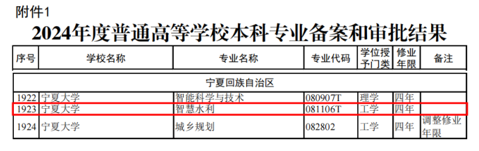 宁夏大学智慧水利本科专业将在2025年秋季学期开始招生,招生名额35人,欢迎全国有志于现代化水利行业的莘莘学子报考!