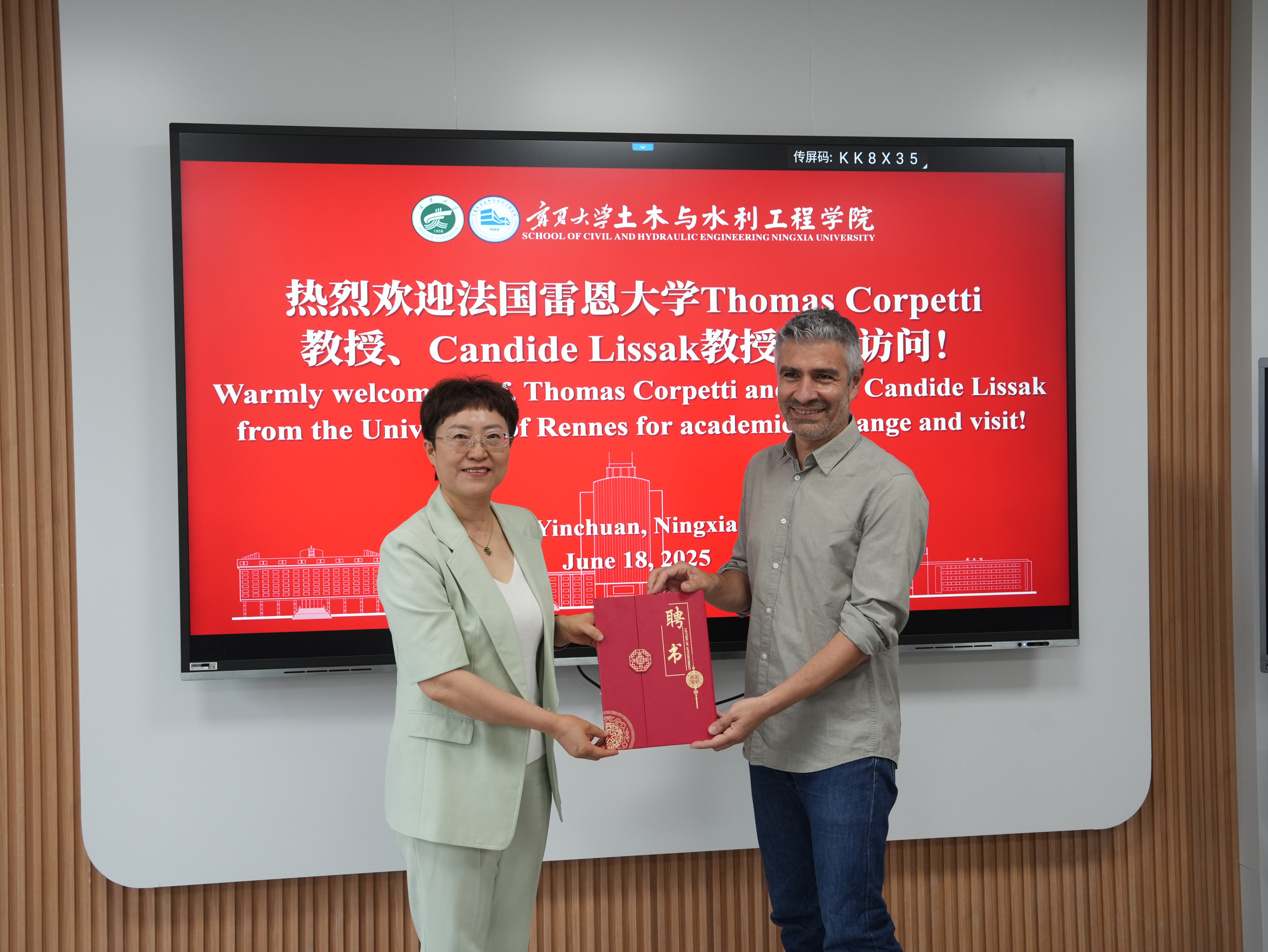 经过交流,宁夏大学土木与水利工程学院正式聘请Thomas Corpetti教授和Candide Lissak教授为客座教授,并举行了聘书颁发仪式。双方在友好交流的基础上,就研究生联合培养达成初步合作意向,为下一步推动双方高校间的科研合作与人才培养奠定基础�