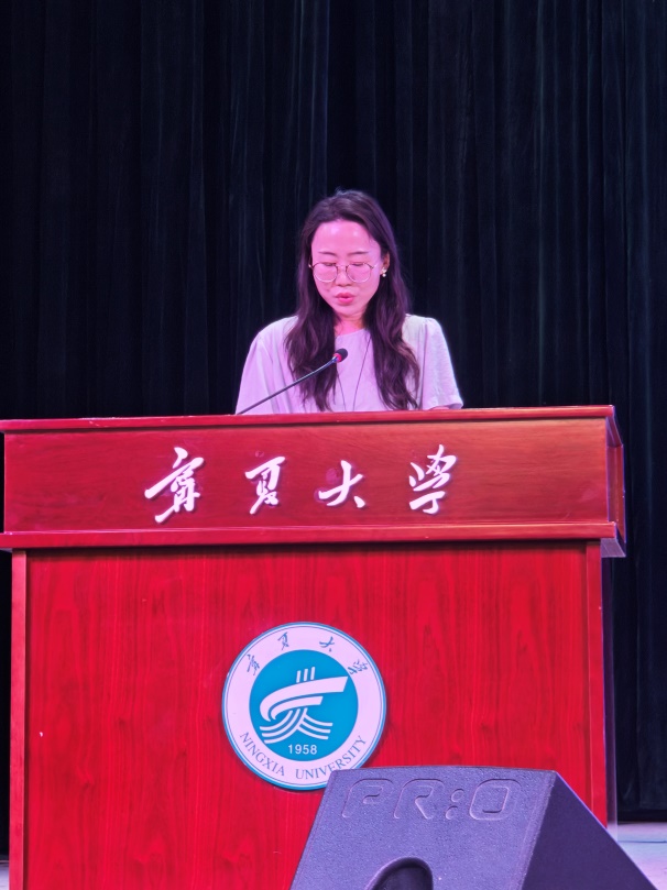 宁夏大学新华学院马菊荣老师和宁夏大学郭忠达同学分别代表指导教师和参赛学生发言�