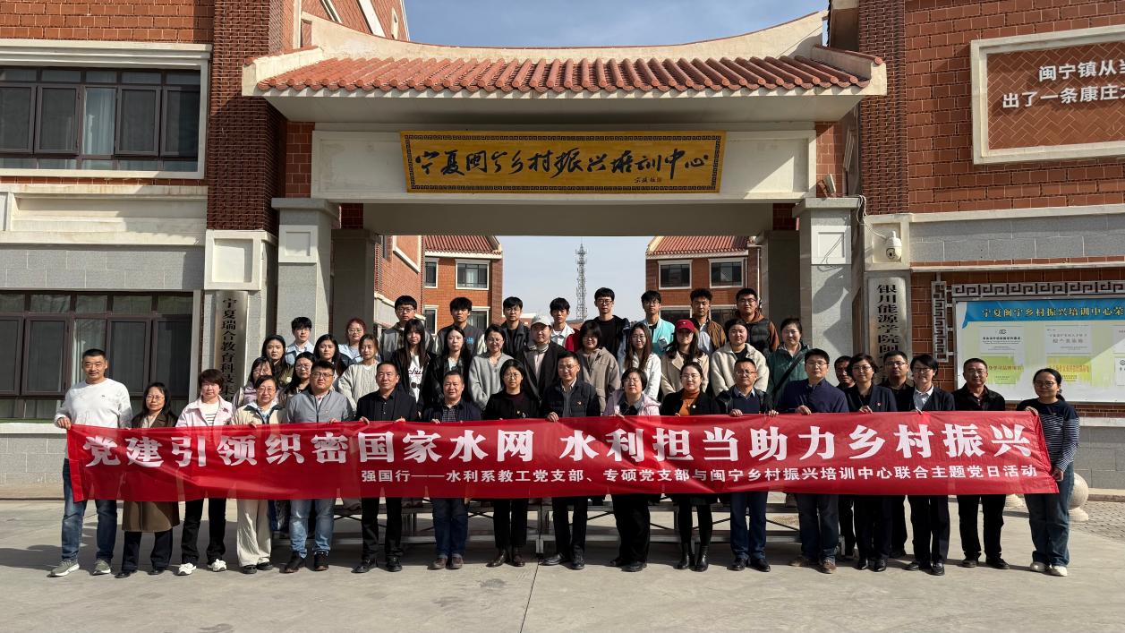 为充分发挥党建引领作用,推动国家水网建设与乡村振兴战略深度融合,2026年3月25日下午,土木与水利工程学院水利系教工党支部、励行书院水利工程专硕党支部与闽宁乡村振兴培训中心开展了2026年“世界水日”“中国水周”主题为“党建引领织密国家水网,水利担当助力乡村振兴”的联合党日活动。