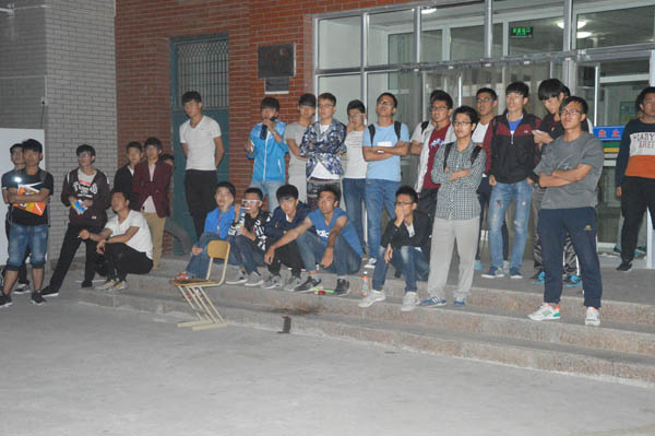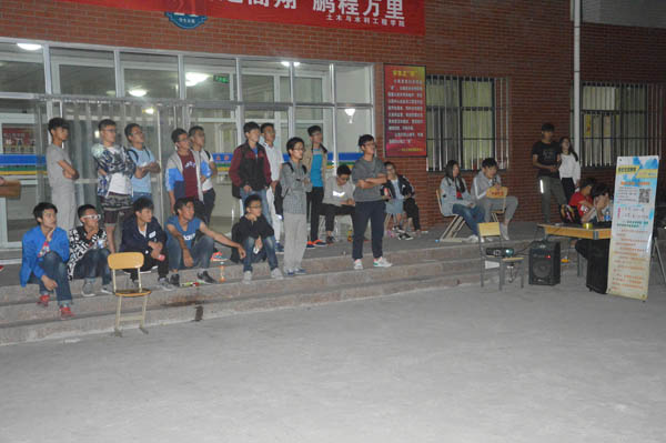 “送老生”电影放映活动在学生公寓21号楼前进行。2016届部分毕业生以及其他年级的学生一同观看了电影。