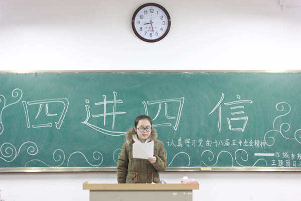 2015年11月26日晚, 六合彩网上投注app2015级城乡规划班在工科楼702教室举行“增进‘四进四信’ 认真学习党的十八届五中全会精神”的主题团日活动。2015级城乡规划班全体成员参加了本次活动。