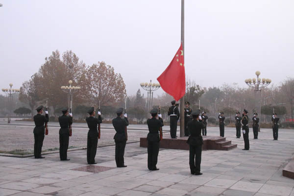 2015年11月9日清晨,六合彩网上投注app全体学生在A区主楼前进行了庄严的升国旗仪式。