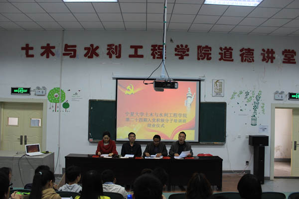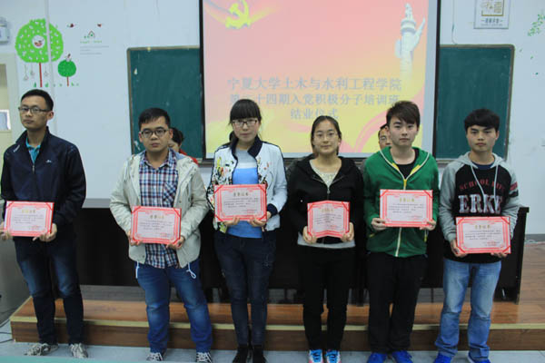 本次培训班包括专题讲座、分组讨论、观看视频、撰写体会和社会实践等多个环节。邀请了学院党委书记马正亮老师、马克思主义学院副院长党锐锋老师、学办主任郭利老师、学院党委副书记张强老师、学院党委副书记王德全老师做了涵盖端正入党动机、如何成为合格的入党积极分子、十八届四中全会解读等方面内容的专题讲座,学员们受益匪浅。在分组讨论阶段大家纷纷表示要从现在做起,不断增强政治意识,提高政治觉悟,争取早日加入中国共产党。4月15日,结业仪式顺利举行,学员代表进行了交流发言,表示要把党课结业作为新的起点,争做学生中的表率,以实际行动向党组织靠拢。