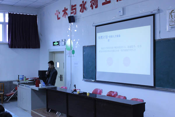 中建三局先后播放了公司宣传片和主人公名为“彭三皮”的青春励志片。随后陈路、杨鑫冰经理分别代表中建三局给大家介绍了企业的基本情况、岗位需求和条件、员工培养和晋级等方面的信息,并激励大家应坚持梦想,永不止步。