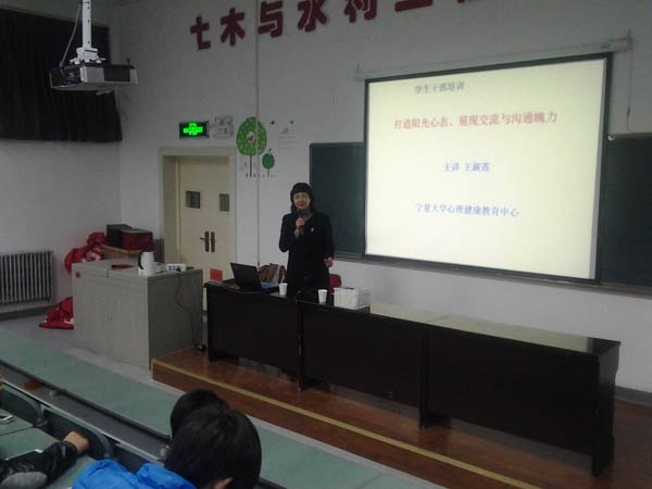 2013年11月18日晚,学院邀请学生处副处长王淑莲老师为六合彩网上投注app学生干部做了题为“人际关系与心理调适”的专题讲座。讲座由学办郭利主任主持。