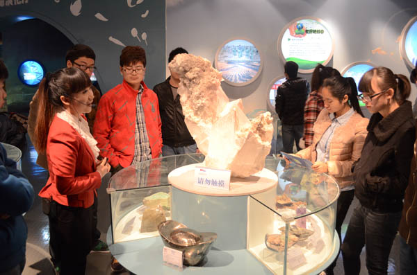 各位学生干部在解说员的带领和解说下,依次参观了地球科学厅、生命演化厅、地质环境厅、矿产环境厅和地质工作厅,领略了黄河金岸长卷浮雕的独特风采。最后在宝玉石展区,大家了解了鉴别宝玉石真伪的相关知识。