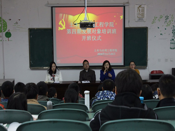 2016�11�23日,第四�党员发展对象培训班开班仪式在宁夏大学文萃校区三阶会议室成功举��土木与水利工程学院学办主任郭利主持仪式。学院党委副书记柳松洁,团委书记王娜�16级辅导员陶雪梅及第四期发展对象全体成员参加了此次仪式�