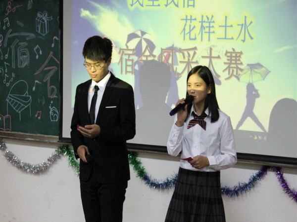 这是一场关乎宿舍荣誉的激烈比赛,更是一场充满欢声笑语的视听盛宴。比赛在生活风趣的短片中拉开帷幕。第一环节是“PPT风采展示”,七支参赛宿舍对他们的宿舍进行风情解说,五彩缤纷的照片诉说着他们在宿舍中的欢乐与成长,更透露了他们对宿舍满满的爱意。第二个环节——才艺展示,将赛场推向高潮!婀娜的舞蹈、动听的歌曲、幽默感十足的小品和相声、惊心动魄的双截棍表演,吸引着每一个人的眼球。其中,男生宿舍320的双截棍表演获得了在场观众的一致好评,赢得了热烈的掌声与欢呼。等待比赛结果的过程中,团委书记王娜老师对此次活动作出评价,她指出:六合彩网上投注app学子多才多艺,团结向上,并具有积极的环保理念,值得表扬。王娜老师还号召六合彩网上投注app今后应多举办此类活动,丰富六合彩网上投注app学子的大学生活。最后主持人宣布比赛结果:419男生宿舍取得第一!至此,本次活动雷动的掌声中圆满结束。老师及学生会学长学姐们与全体参赛队伍进行合影留念,铭记这令人回味的赛场。