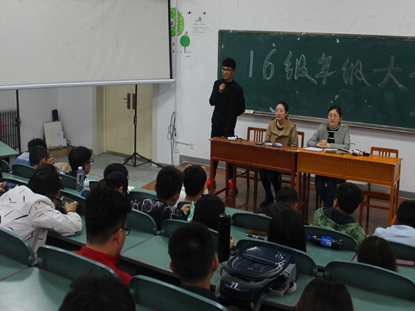 2016级年级大会在宁夏大学文萃校区工科楼三阶顺利召开,学院党委副书记柳松洁、16级辅导员胡思斯出席此次会议。16级全体学生认真聆听了本次会议内容。