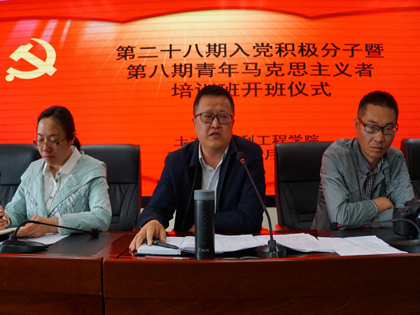 第二十八期入党积极分子暨青年马克思主义者培训班开班仪式在宁夏大学L楼国防生之家顺利举行。此次会议由兼职辅导员惠迎新主持,学院党委书记高继明、党委副书记苏宇静、团委书记王娜、15级辅导员马小凤、16级辅导员胡思斯、各学生党支部书记和培训班全体成员参加了本次会议。