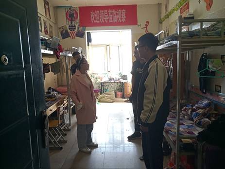 党委副书记柳松洁和学生工作办公室全体老师对学生宿舍进行了本学期第一次安全卫生检查工作。