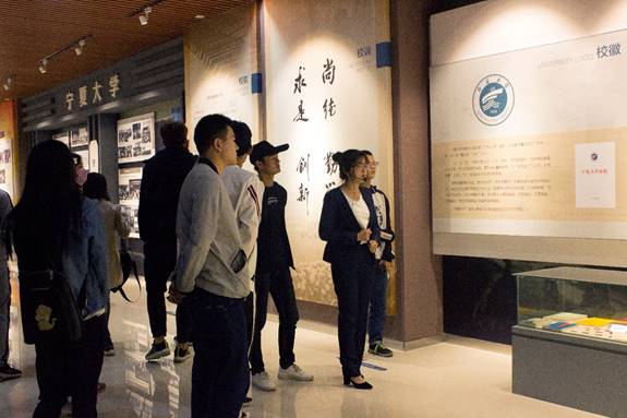 进入校史馆,讲解员以学校的发展历程为开篇,结合校史馆图文并茂的信息和实物,讲述了建立于1958年的宁夏大学发展所历经的岁月沧桑和风雨洗礼。接着,讲解员从学校艰苦创业时期和快速发展时期说起,结合“沙枣树”精神和“尚德、勤学、求是、创新”的简明校训,讲述了学校各个方面建设的精神风貌和杰出成就。最后,解说员对学校人文、地理、教学、科研以及对外交流等方面进行了详细的阐述,告诉我们每个宁大人应该具备和发扬脚踏实地、志存高远,不畏艰难、团结奋进,努力实现跨越式发展的精神态度。