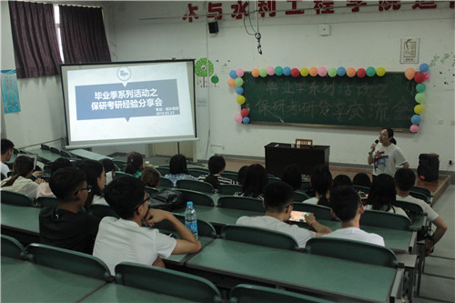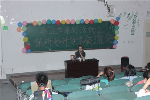 于5月18-24日根据专业设置分六场进行了“毕业季系列活动之保研考研经验分享会”。分享会由学办的王娜老师主持,2015、2016级同学们提问踊跃,交流会气氛热烈。