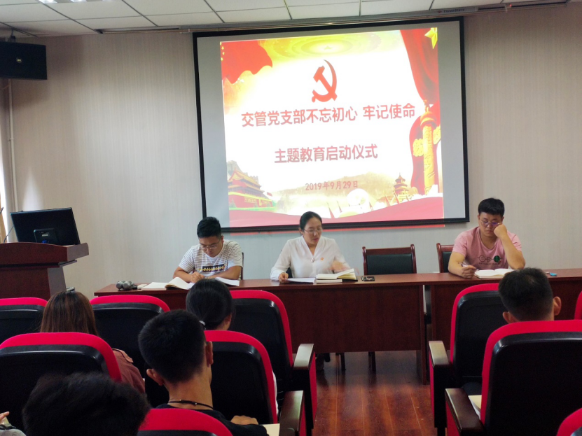 交管本科党支部于知行楼505会议室举行“不忘初心、牢记使命”主题教育启动仪式。此次活动由支部书记王娜主持,支部全体党员参加。