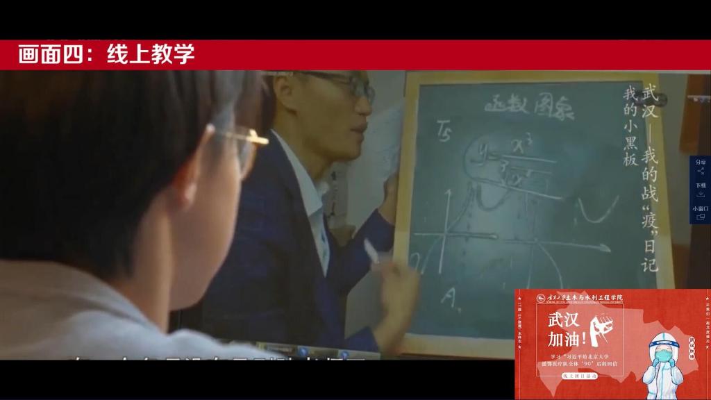 团日活动开始,播放了《习近平给北京大学援鄂医疗队全体�90’后的回信》的新闻联播画面。随后以抗疫日记为主题,选取了“医护人员”“建筑工地”“患者献血”“线上教学”“我们”等5个画面,通过以小见大的形式,为大家展现了战疫一线的感人故事:那一张张面容下的压痕,那一个个与时间赛跑的工地,那一幕幕舍己奉献的画面,还有离我们最近的老师们的第一次线上教学……通过观看直播视频,同学们纷纷在自己班级的QQ群内展开了讨论,接下来让我们看看�