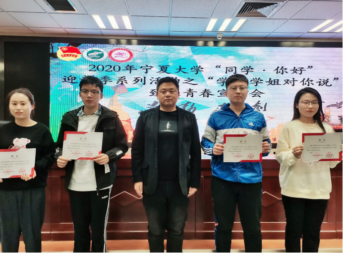 2020年10月20日晚,为帮助2020级本科生快速了解校园生活,感受校园魅力,找准自己的发展目标。宁夏大学校团委、宁夏大学学生会组织联合各学院团委学生会举办的“同学·你好”迎新季系列活动之“学长学姐对你说”致胜青春宣讲会于文萃校区国防生之家举行。