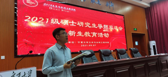 在知行楼三阶报告厅召开2021级研究生新生导师双选会与新生入学教育活动,2021级研究生全体新生、学院领导、部分研究生导师、学工办及研办老师参加会议。