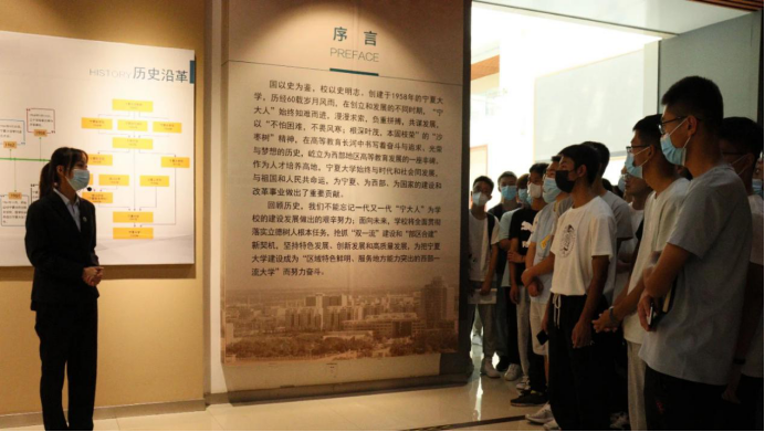 “爱校荣校的归属感教育”主题校史展览活动在宁夏大学贺兰山校区科技楼一楼校史馆开展。2021级全体新生参加了此次活动。