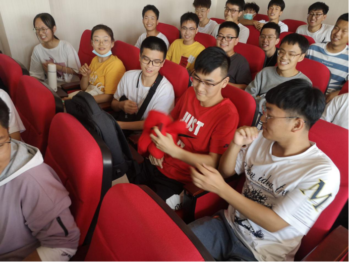 接着到了“党史知识竞答”的环节,同学们击鼓传花,被选中的同学们回答关于党史的问题,正确率很高,不幸答错的同学也都带着自己的小伙伴上去唱了《没有共产党就没有新中国》等红色歌曲或是积极向上的流行歌曲。同学们同聚一堂,在欢声笑语中学习党史知识�